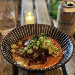 Shalom Japan is a hidden gem nestled in the heart of Williamsburg, offering a delightful fusion of Jewish and Japanese cuisine. Owned and operated by married chefs Aaron Israel and Sawako Okochi, the restaurant beautifully blends their cultural backgrounds with the vibrancy of Brooklyn. From the moment you step inside, you're greeted with a warm and intimate ambiance, reflecting the love and passion that goes into each dish. The menu is a testament to the couple's unique culinary perspective, showcasing a harmonious marriage of flavors and traditions. I had the pleasure of trying several dishes during my visit, and each one was a culinary delight. The Lion's Mane Karaage, featuring Japanese fried mushrooms and pickled chilies, was a standout appetizer, bursting with flavor and texture. For the main course, I opted for the Shalom Japan Burger, a double stack masterpiece with terivati ban, di pici mayo, and crisp lettuce. It was a perfect blend of savory and satisfying. But the highlight of the meal was undoubtedly the Matzoh Ball Ramen. The combination of chicken broth, scallions, mandels, nori, and the optional soy-marinated egg was simply divine. I also couldn't resist adding an extra matzoh ball and a foie gras dumpling, which elevated the dish to new heights. Overall, my experience at Shalom Japan was nothing short of exceptional. The food was delicious, the atmosphere was cozy, and the service was top-notch. I highly recommend this restaurant to anyone looking for a unique and memorable dining experience in Brooklyn. Thank you, Shalom Japan, for a truly wonderful evening. I can't wait to come back and try more of your delectable offerings!